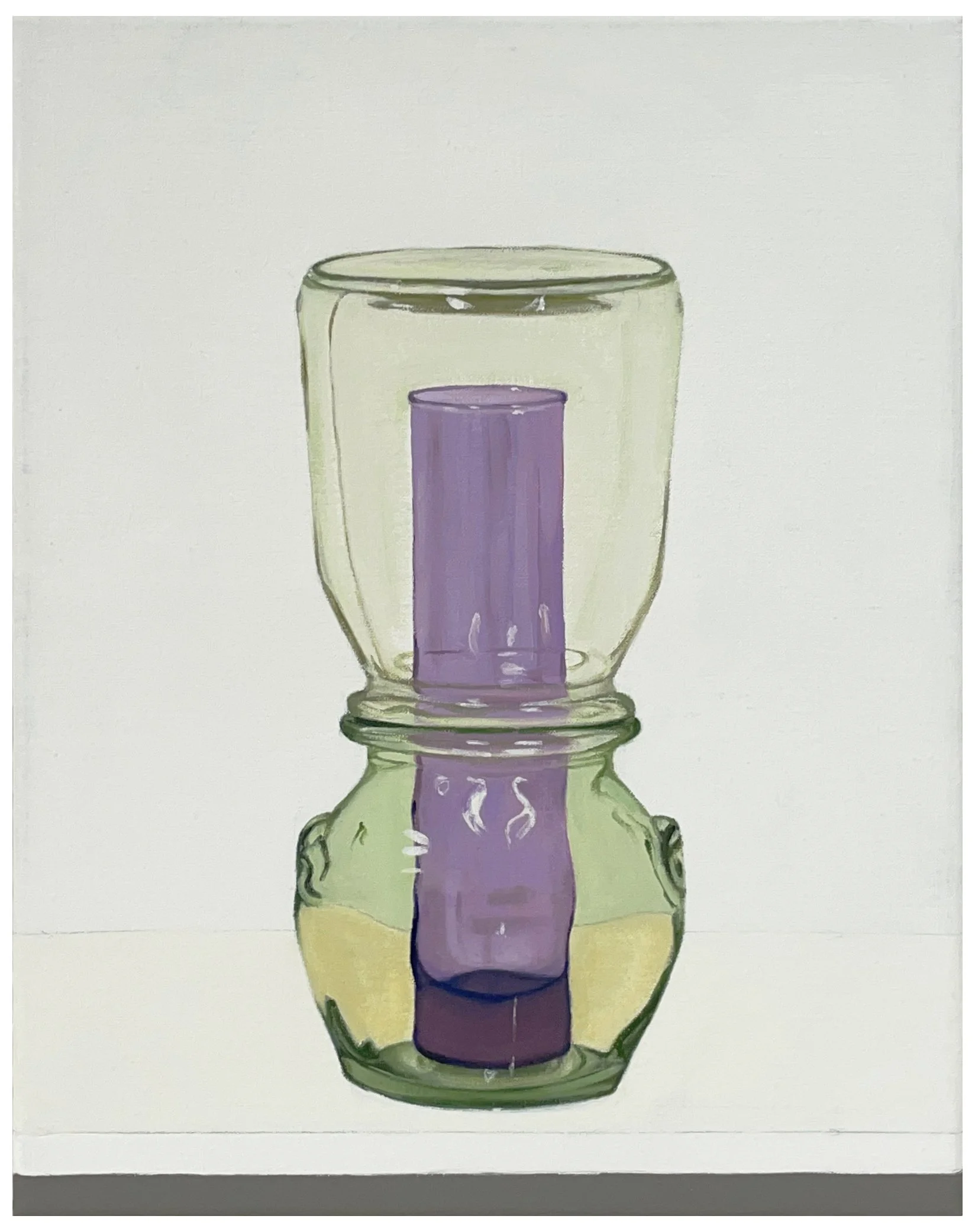 A Glass Vessel Inside Another With Another Inverted On Top, 2025, 14 x 11 inches, oil on linen